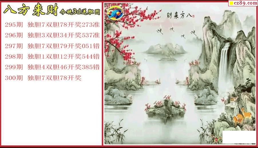 > 25年300期3d 八方来财今晚送胆图